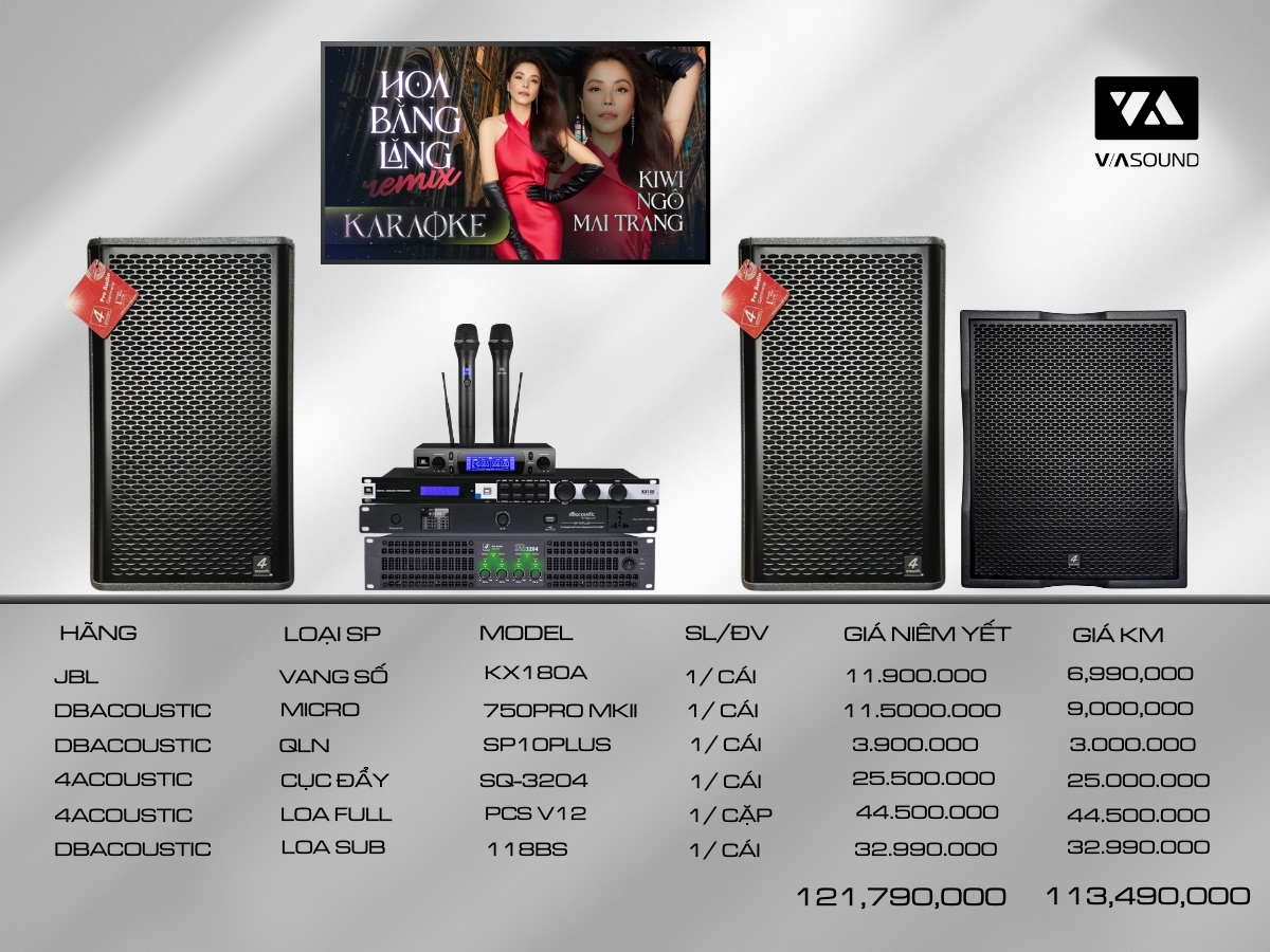 Combo karaoke 4M4 là sự kết hợp hoàn hảo giữa công nghệ âm thanh tiên tiến từ DBAcoustic và 4Acoustic, mang đến chất âm mạnh mẽ, sống động và rõ nét trong từng dải tần.