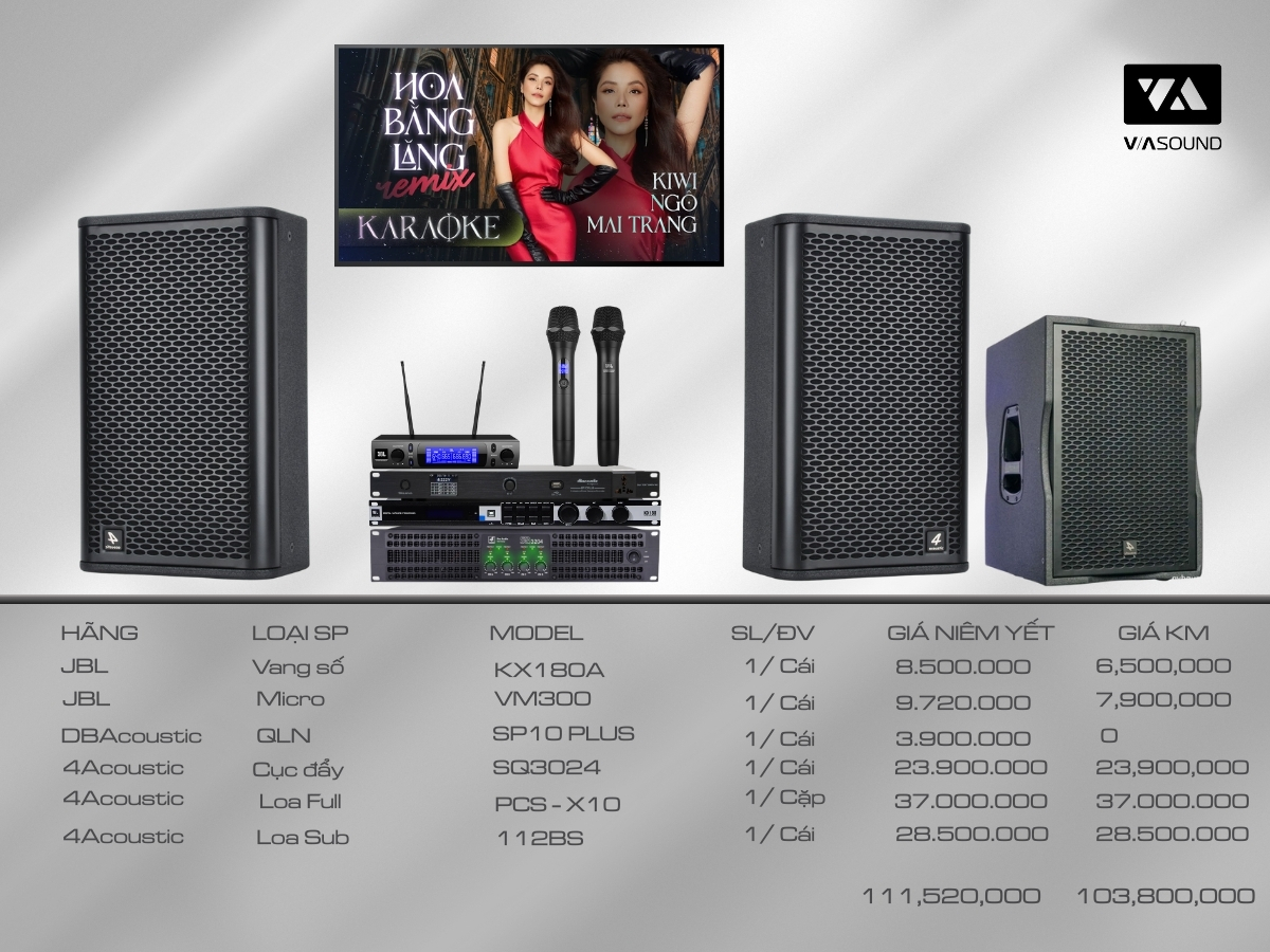 Nếu bạn đang tìm kiếm một bộ dàn karaoke chất lượng, bền bỉ và cho âm thanh chuẩn mực, combo karaoke 4J1 là lựa chọn đáng cân nhắc. Được phối ghép từ DBAcoustic, JBL và 4Acoustic, và phân phối chính hãng bởi Vasound, combo này không chỉ mang đến trải nghiệm ca hát tuyệt vời mà còn đảm bảo hiệu suất ổn định lâu dài.