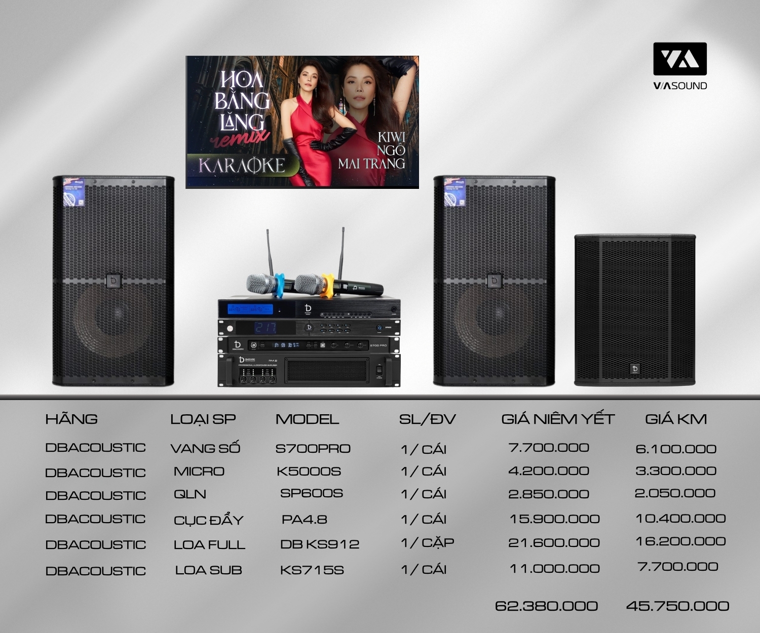 Combo Karaoke DB8 đang được bày bán tại showroom và hầu hết trên các nền tảng Vasound với mức giá tốt nhất. Nếu bạn yêu thích muốn tìm hiểu chi tiết và sở hữu dàn karaoke này cho gia đình bạn có thể liên hệ trực tiếp qua Hotline để được đội ngũ tư vấn chi tiết nhất nhé!