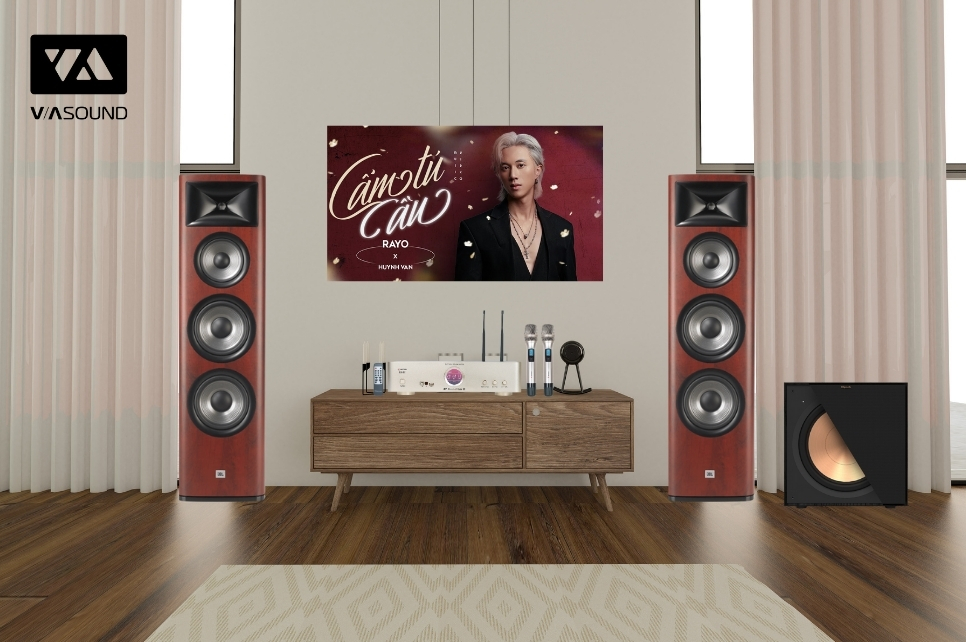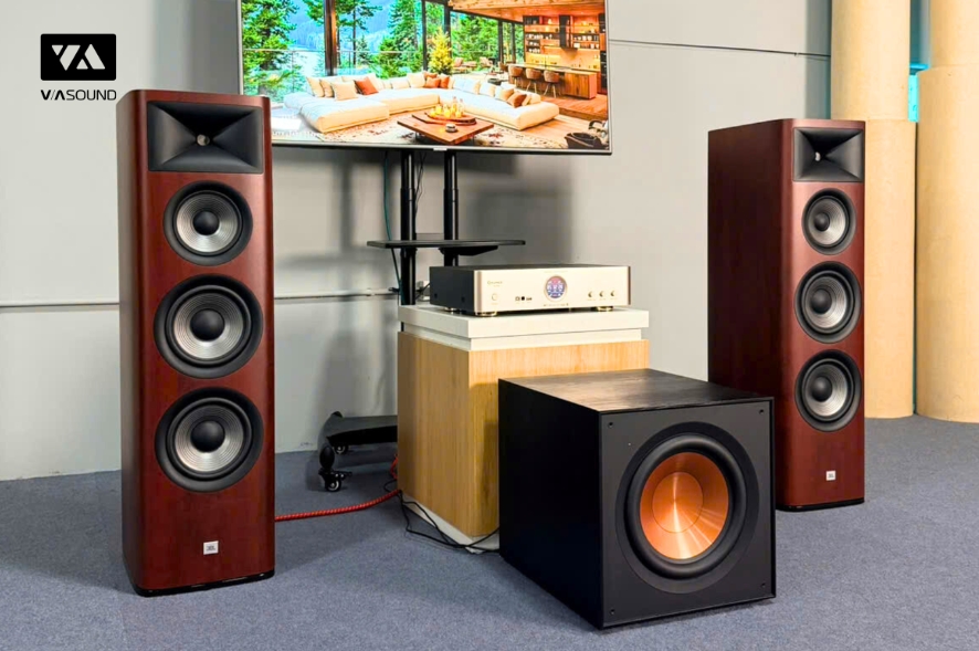 Hình ảnh chụp thực tế Combo Amply Sumico SU450 + Loa cột JBL Studio 698 + Loa subwoofer Klipsch R-121SW – JM1 tại Vasound.