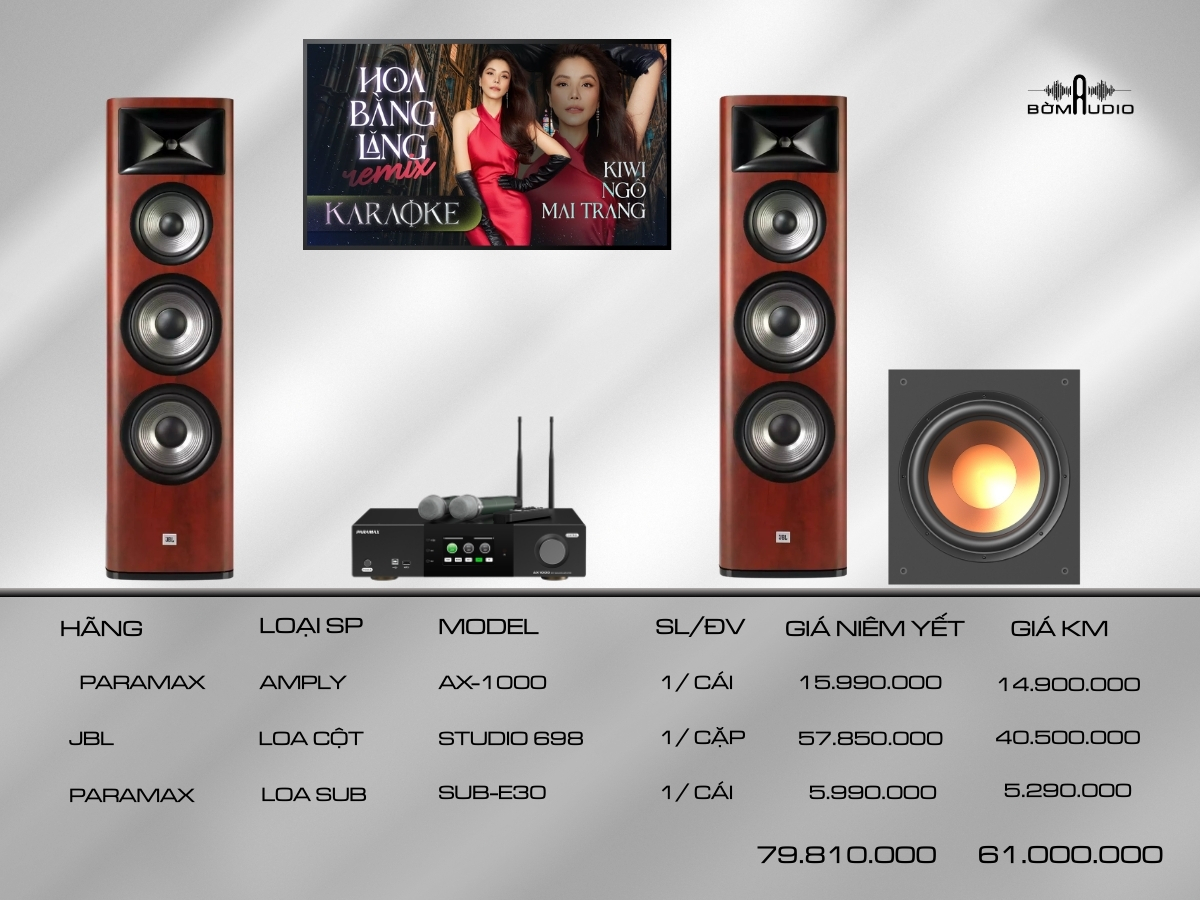 Combo karaoke JP2 được thiết kế dành riêng cho nhu cầu hát karaoke gia đình, mang lại cảm giác hát nhẹ, tiếng micro trong trẻo và nhạc nền mạnh mẽ, đầy năng lượng. Sự kết hợp giữa JBL và Paramax giúp bộ dàn tái tạo giọng hát rõ nét, giúp ai cũng có thể hát hay hơn và tận hưởng những buổi giải trí trọn vẹn tại nhà.