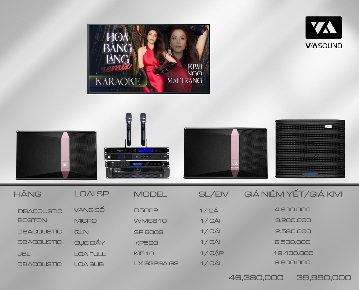 Combo Karaoke JD2 dàn âm thanh karaoke cao cấp được phối ghép hoàn hảo giữa DBAcoustic và JBL, mang đến trải nghiệm ca hát đỉnh cao ngay tại nhà. Với chất âm mạnh mẽ, chi tiết và sống động, cùng thiết kế sang trọng, hiện đại, JD2 không chỉ nâng tầm không gian giải trí mà còn mang lại cảm giác hát karaoke chuyên nghiệp như tại phòng hát cao cấp.
