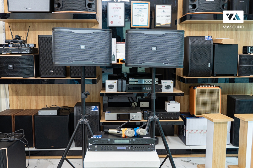 Hình ảnh chụp thực tế combo loa karaoke JBL RM 210 + Vang số Dbacoustic D500P + Micro karaoke DBacoustic DB450II V2 – JD5 tại VASOUND.