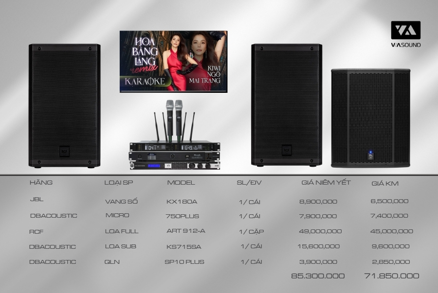 Combo Karaoke JD7 đang được bày bán tại showroom và hầu hết trên các nền tảng VASOUND với mức giá tốt nhất. Nếu bạn yêu thích muốn tìm hiểu chi tiết và sở hữu dàn karaoke này cho gia đình bạn có thể liên hệ trực tiếp qua Hotline để được đội ngũ tư vấn chi tiết nhất nhé!