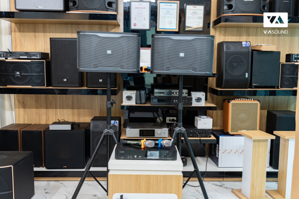 Hình ảnh chụp thực tế combo loa karaoke JBL RM 210 + Mixer karaoke tích hợp Sumico SU-910 tại VASOUND.