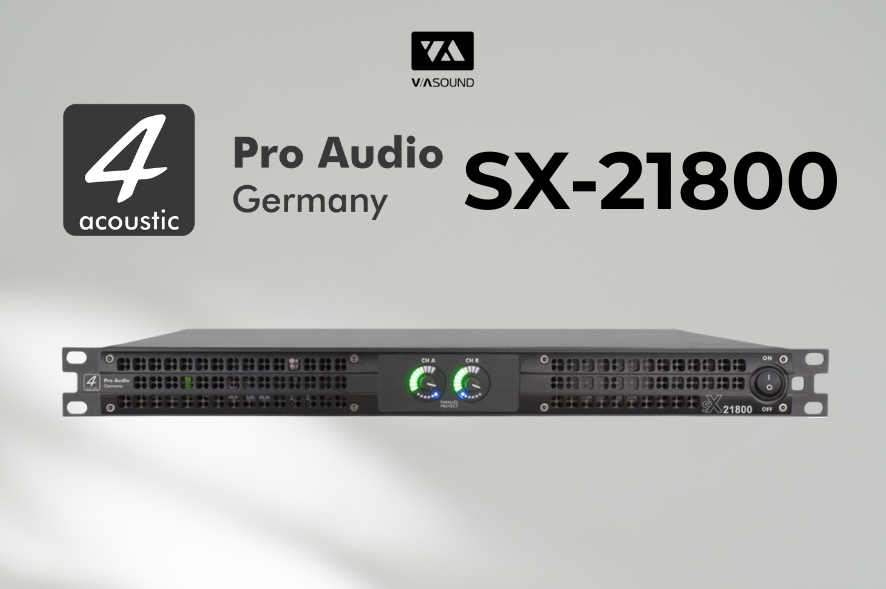 4Acoustic SX-21800 là cục đẩy công suất 2 kênh dòng SX Series, được thiết kế để đáp ứng nhu cầu âm thanh chuyên nghiệp với hiệu suất mạnh mẽ và chất lượng âm thanh vượt trội. Với công suất lên đến 2 x 2400W @ 2Ω, SX-21800 là lựa chọn lý tưởng cho các hệ thống âm thanh sân khấu, hội trường, bar, club và các ứng dụng cần công suất lớn trong không gian nhỏ gọn.