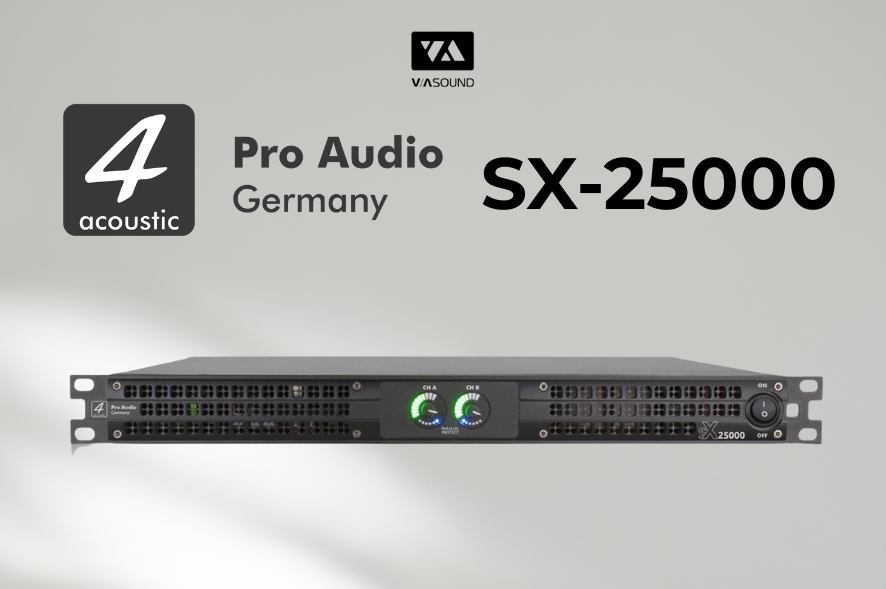 4Acoustic SX-25000 cục đẩy công suất 2 kênh thuộc dòng SX Series cao cấp của thương hiệu 4Acoustic Pro Audio Germany. Thiết kế 1U nhỏ gọn, hiệu suất mạnh mẽ, phù hợp cho các hệ thống âm thanh chuyên nghiệp như hội trường, sân khấu, rạp chiếu phim, phòng karaoke cao cấp và các ứng dụng lắp đặt cố định.