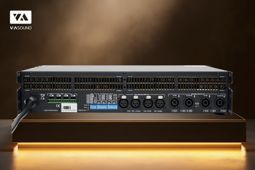 Các cổng nguồn và cổng kết nối được bố trí hợp lý, có chú thích rõ ràng, giúp quá trình phối ghép với các thiết bị âm thanh khác trở nên đơn giản và nhanh chóng.