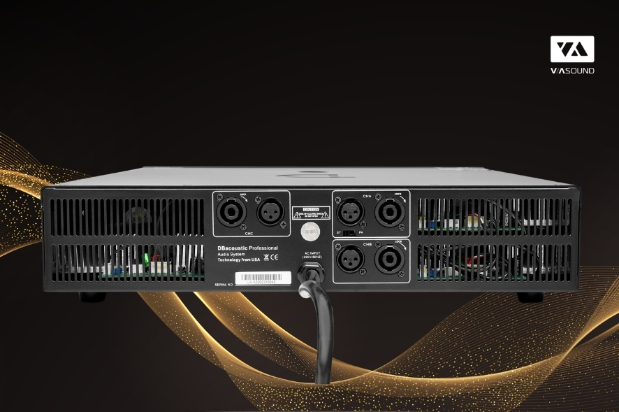 Điểm nổi bật nhất của DBacoustic LX-A5 Premium nằm ở cấu hình khuếch đại 3 kênh mạnh mẽ và linh hoạt. Hai kênh chính A và B cung cấp công suất 600W mỗi kênh ở 8Ω, phù hợp để kéo loa full-range hoặc loa karaoke công suất lớn, trong khi kênh C chuyên biệt dành cho loa sub đạt mức công suất lên đến 1000W, mang lại dải trầm sâu, chắc và đầy uy lực.