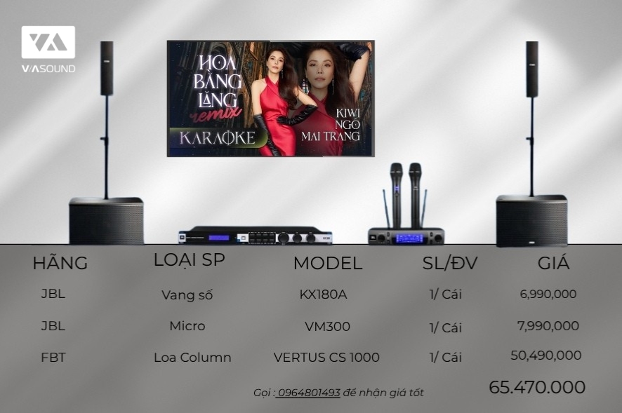 Khi kết hợp JBL KX180A, JBL VM300 và FBT Vertus CS1000, VA1 mang đến chất âm mạnh mẽ, giàu chi tiết và cực kỳ sống động. Từ những bản nhạc nhẹ nhàng, trữ tình đến các bản EDM sôi động, hệ thống đều tái hiện mượt mà, giúp bạn tận hưởng không gian karaoke đẳng cấp ngay tại nhà.