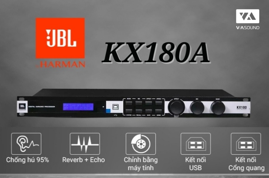 Vang số JBL KX180A là bộ xử lý kỹ thuật số chuyên nghiệp, dùng hoàn hảo trong các dàn karaoke, nghe nhạc, sân khấu, hội trường…