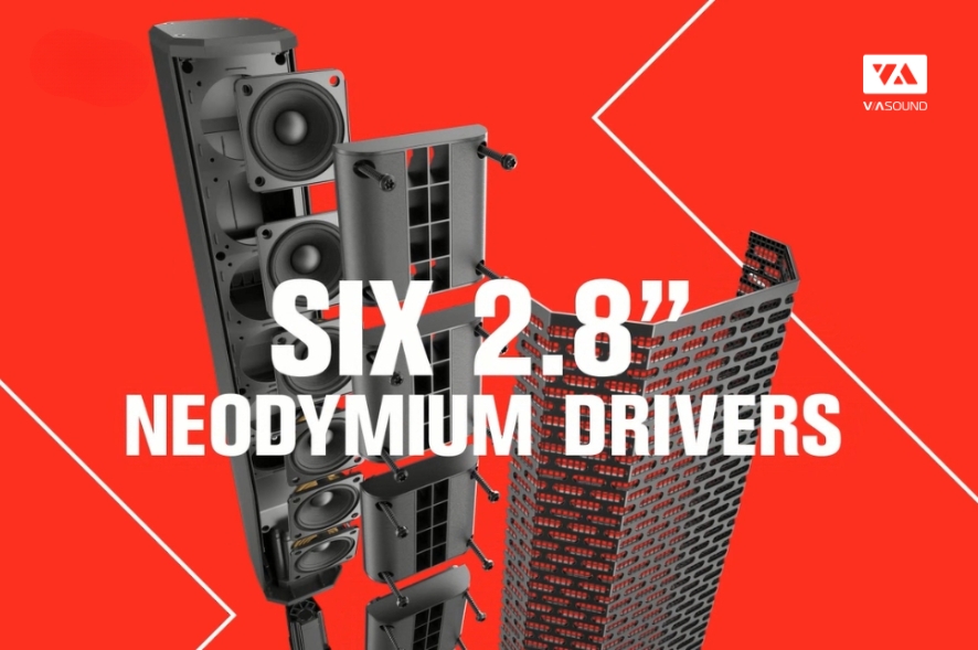 Phần loa cột sử dụng 6 driver 2.8 inch, thiết kế dạng array nhỏ gọn, cho khả năng phân tán âm thanh hiệu quả. Khung loa làm từ vật liệu composite bền bỉ, kết hợp tay cầm nhôm chắc chắn giúp việc lắp ráp trở nên đơn giản. Ngoài ra, hệ thống cổng thoát khí phía sau không chỉ hỗ trợ tối ưu âm thanh mà còn giúp tản nhiệt tốt hơn khi hoạt động liên tục.