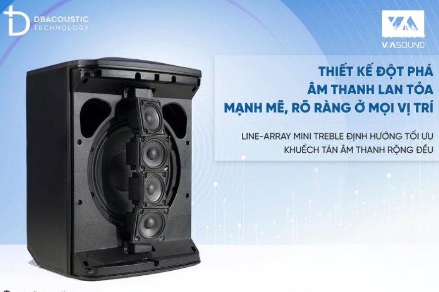 Hệ thống loa bao gồm một củ bass 10 inch (LF-1x10", 1.5"VC) tạo ra âm trầm uy lực, sâu lắng và lan tỏa tốt, kết hợp với 4 loa treble 3 inch cấu tạo củ từ Neodymium độ nhạy cao, tái tạo dải trung và cao chi tiết. Loa có góc phủ sóng rộng Ngang 90° và Dọc 60°, giúp âm thanh được phân tán đều khắp không gian, mang đến trải nghiệm nghe toàn diện cho khán giả.