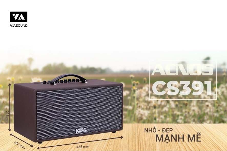 Acnos CS391 sở hữu kiểu dáng xách tay gọn nhẹ, thiết kế theo dạng hình hộp chữ nhật đơn giản nhưng tinh tế, gợi liên tưởng đến một chiếc vali mini tiện dụng. Với kích thước 435 x 215 x 235 mm và trọng lượng chỉ 10 kg, người dùng có thể dễ dàng mang theo loa đến bất kỳ địa điểm nào — từ phòng khách, sân vườn cho đến các buổi dã ngoại hay du lịch xa.
