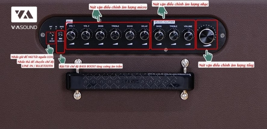 | Ngõ kết nối | MP3 USB; GUITAR; OPTICAL; AUX INPUT (jack 3.5 mm); AUX OUTPUT(jack 3.5 mm) |