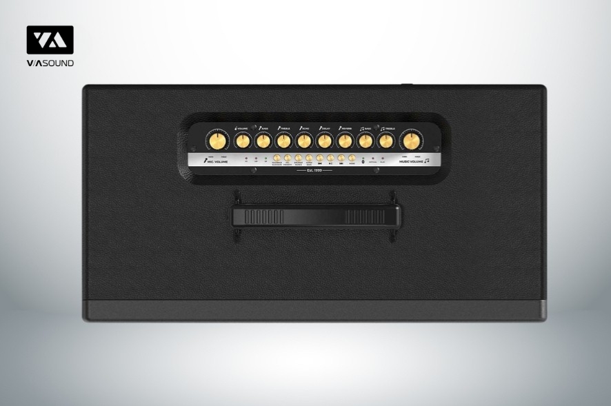Bảng điều khiển nằm ở mặt trên với núm xoay cơ học, ký hiệu rõ ràng, dễ thao tác ngay cả khi biểu diễn. Người dùng có thể chỉnh âm lượng nhạc, micro, hiệu ứng và dải âm chỉ trong vài giây.