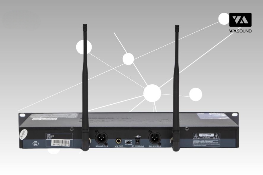 Đầu thu micro được chế tạo từ nhôm cao cấp phủ sơn tĩnh điện, mặt trước có màn hình LCD hiển thị tần số, các nút điều chỉnh riêng cho từng micro và đèn báo tín hiệu, mặt sau tích hợp đầy đủ các cổng kết nối, đầu nguồn và 2 cần ăng-ten, đảm bảo thu sóng ổn định và hiệu quả.