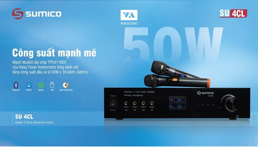 Amply 4 kênh Sumico SU 4CL là lựa chọn tối ưu cho giải trí gia đình và hệ thống âm thanh thương mại. Liên hệ ngay VASOUND để được tư vấn và sở hữu sản phẩm chính hãng với mức giá tốt nhất.