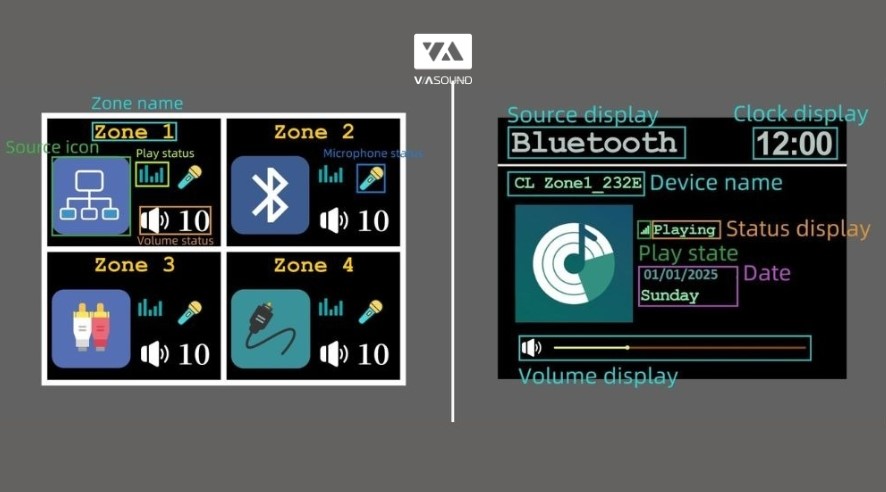 Sumico SU 4CL được trang bị tính năng Multi-Zone Audio, cho phép người dùng linh hoạt lựa chọn cách phát nhạc. Bạn có thể thiết lập mỗi vùng phát một nguồn nhạc riêng biệt hoặc đồng bộ tất cả các vùng để cùng phát một bản nhạc duy nhất. Với chế độ By Master Input Source, hệ thống sẽ lấy một nguồn phát làm trung tâm; trong khi chế độ By App cho phép chọn một vùng làm master để chia sẻ nhạc đến các khu vực khác một cách dễ dàng.
