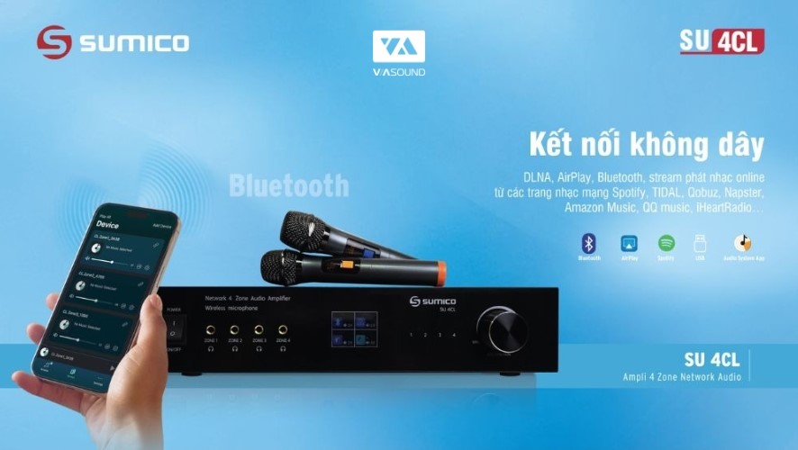 Không chỉ dừng lại ở sức mạnh khuếch đại, Sumico SU 4CL còn gây ấn tượng với khả năng phát nhạc đa dạng. Sản phẩm hỗ trợ nhiều nền tảng trực tuyến như Spotify Connect, Tidal Connect, Airplay, DLNA, UPnP, giúp người dùng thưởng thức kho nhạc số phong phú. Bên cạnh đó, ampli còn cho phép phát nhạc trực tiếp từ điện thoại, ổ NAS, USB, mang lại sự tiện dụng và linh hoạt tối đa cho mọi nhu cầu giải trí.