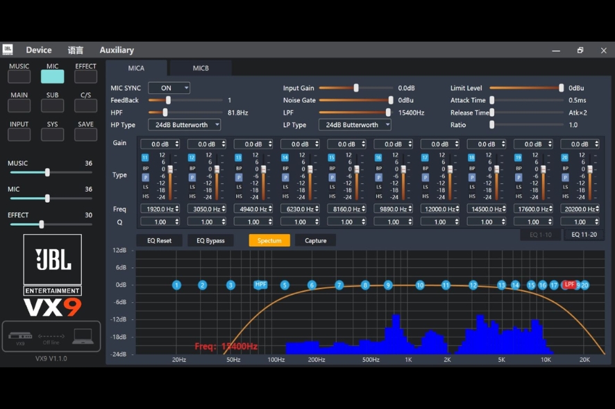 Đặc biệt, JBL VX9 trang bị EQ tham số 15 băng tần cho mỗi đầu vào nhạc và EQ tham số 20 băng tần cho mỗi đầu vào micro, cho phép tối ưu hóa âm thanh theo từng nguồn phát. Nhờ đó, người dùng có thể dễ dàng tùy chỉnh để có chất âm sống động, rõ ràng, phù hợp với nhiều phong cách trình diễn và nhu cầu karaoke chuyên nghiệp.